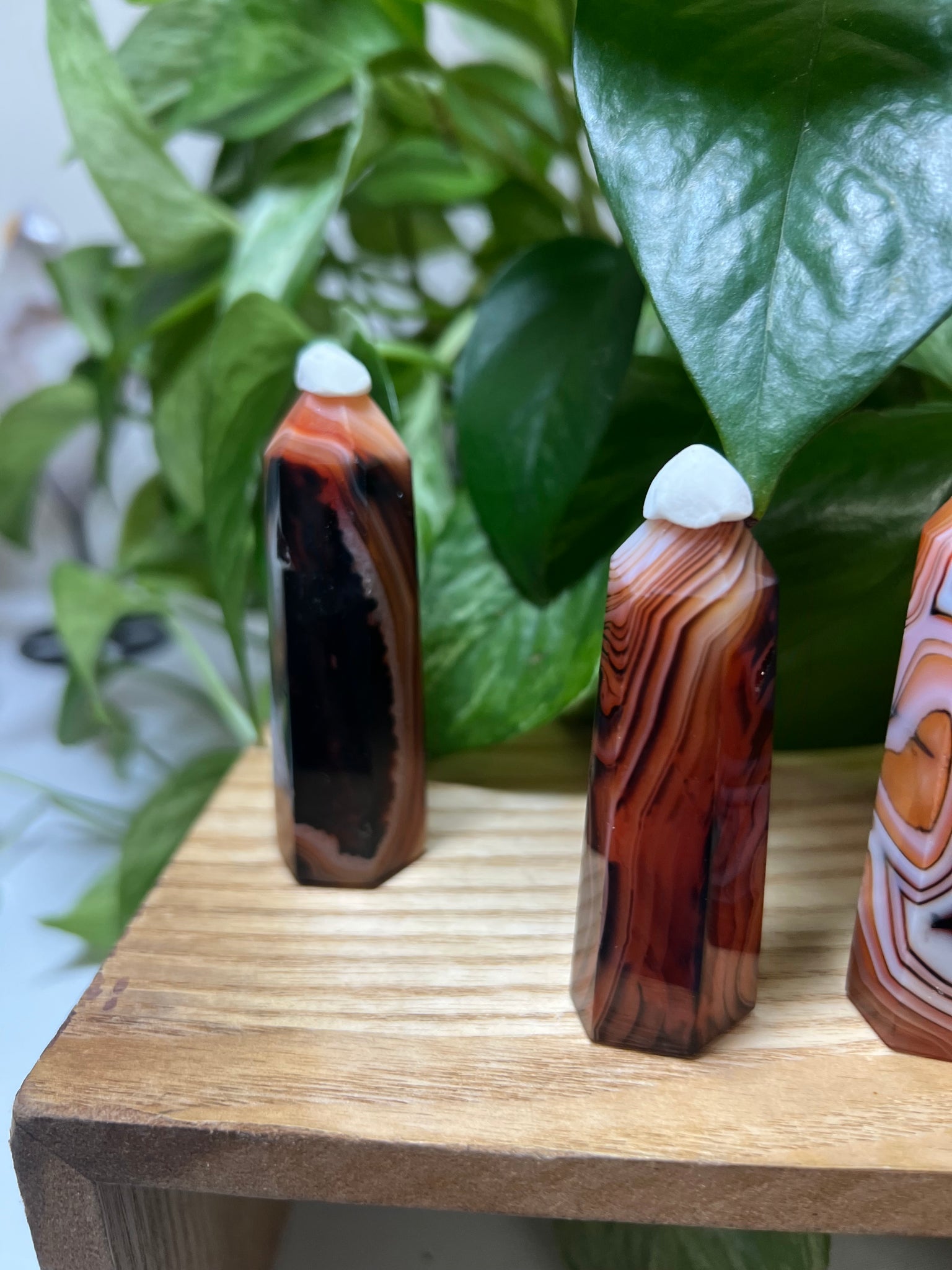 Channel grounded confidence and steadfast courage with Sardonyx, the Stone of Strength and Stability. This striking crystal blends rich layers of deep red, brown, and white onyx — symbolizing balance between passion and discipline. Used since ancient times by warriors and leaders, Sardonyx is known to fortify willpower, attract lasting success, and protect against negativity.